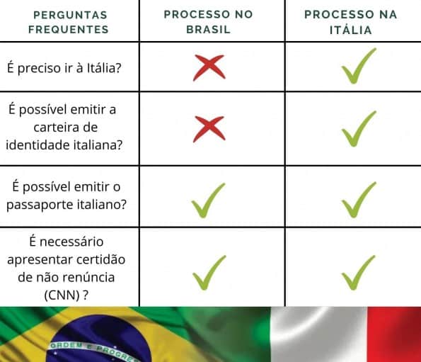 Existe a possibilidade de fazer o processo tanto no Brasil como na Itália. No entanto, é importante ter em mente o tempo de duração, gastos e requisitos para realizar o processo em cada lugar.